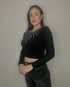 Lasciati conquistare dalla Maglia Lovely! Un crop top a costine realizzato in morbidissima viscosa elasticizzata, ed impreziosita da strass che le donano un tocco di luce.